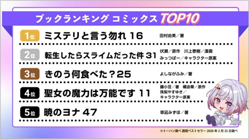 2026年2月より新たなコンテンツとしてコミックスブックランキングを放映。渋谷109フォーラムビジョン・梅田dipビジョン等で茜ソランが最新の書籍情報をご紹介しています。