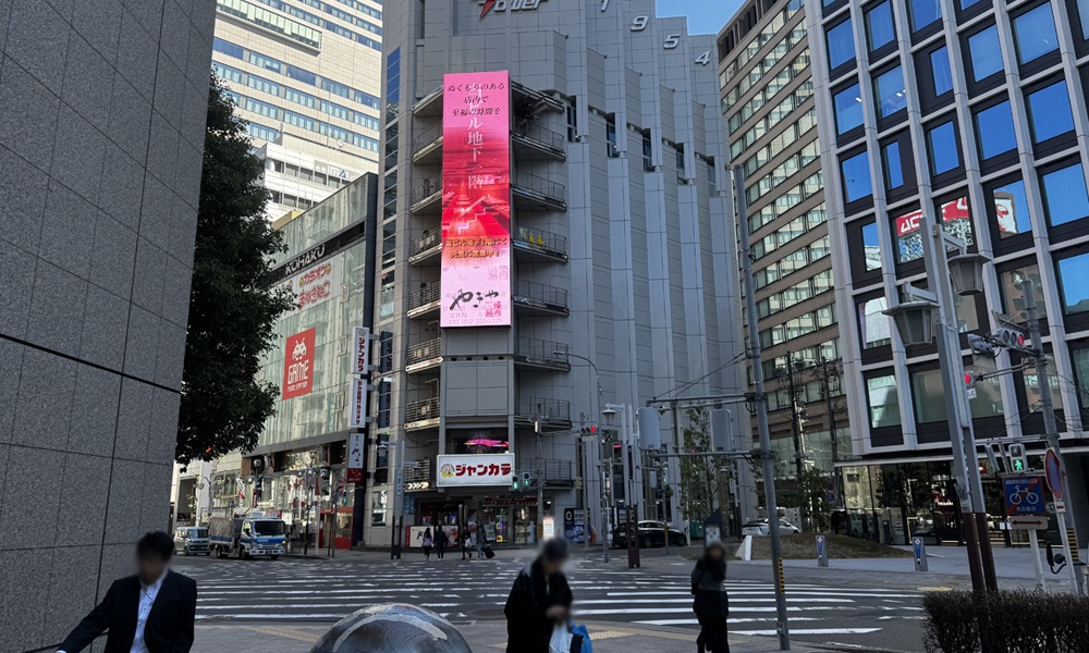 各主要鉄道名古屋駅から1~5分と多くの人が訪れる場所に設置された縦型ビジョンです。日本最大級の縦型ビジョンで3Dにも対応しており、中部地方最大級の繁華街・オフィス街として賑わっている名駅地区において、若者やビジネスマンなど多様な人流への訴求効果が見込めます。