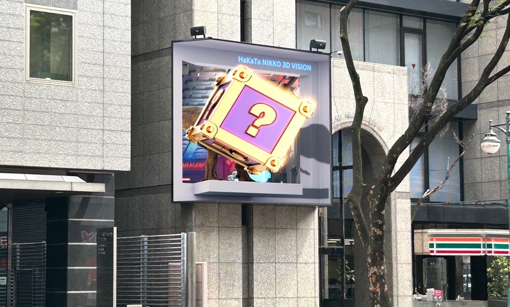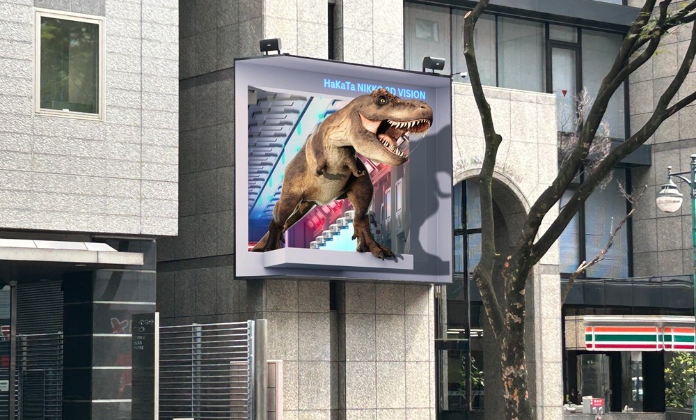 博多駅から徒歩3分の場所に設置された博多初の3D対応のLEDビジョンです。周辺にはビジネス街や宿泊施設も多く、通勤者、観光客、学生、生活者と幅広い層へのアプローチが可能です。