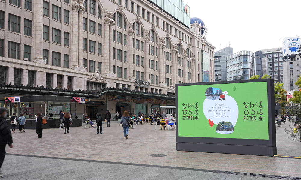 なんば広場Visionなんば広場に設置された2面の媒体となります。なんば広場の滞留者、駅・商店街利用者へアプローチが可能です。