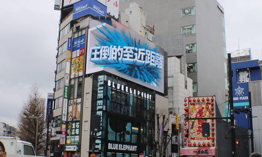 新宿東口にあるビル屋上に設置された媒体です。4K対応の150m²を超える印象的な形状の最新LEDは視聴者にインパクトを与えます。1~3階はイベントスペースとして活用可能となり、ビジョン放映と連動させることで、より効果的なプロモーションが可能です。